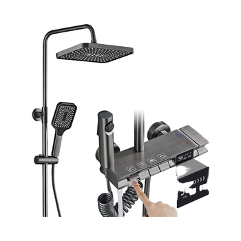 Hiện đại Brass đơn hệ thống vòi hoa sen tĩnh nhiệt Đàn Piano vòi Set hiển thị kỹ thuật số phun mềm cầm tay vòi hoa sen đầu treo tường